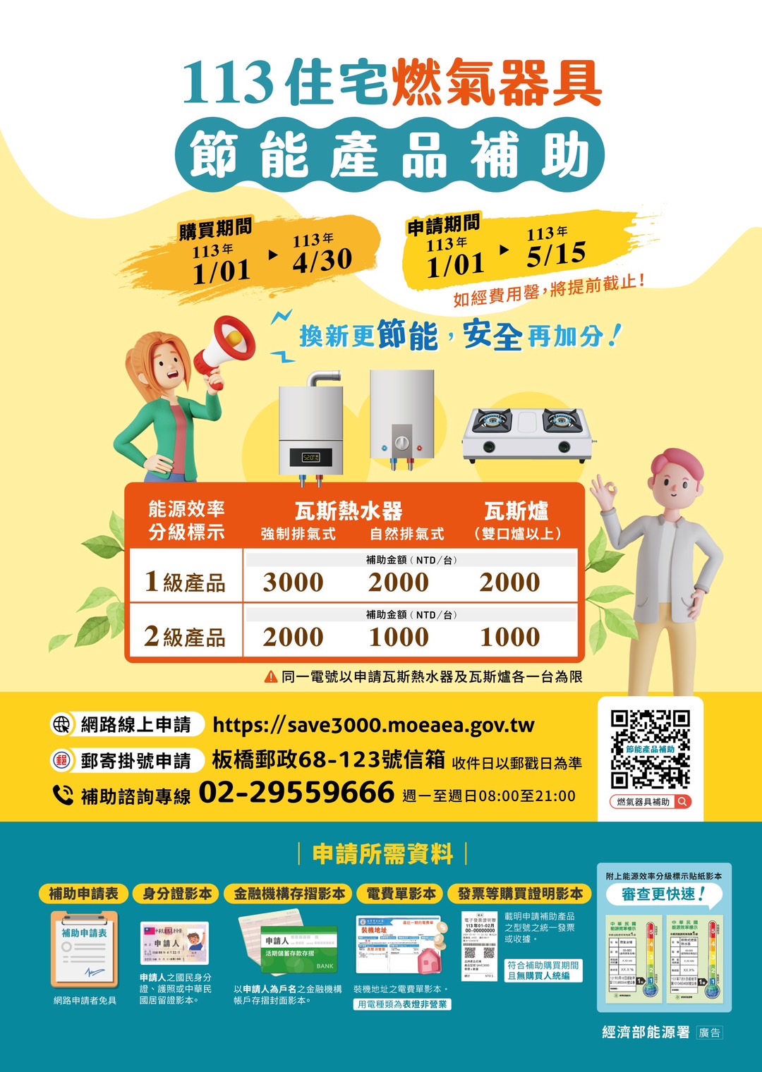 經濟部能源局補助於(104年11月7日~105年2月29日): 期間凡是購買: 一、強制排氣式熱水器補助2000元。...