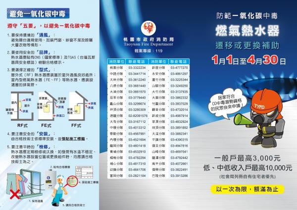 107年1月1日起 防範一氧化碳中毒,消防局有補助!!