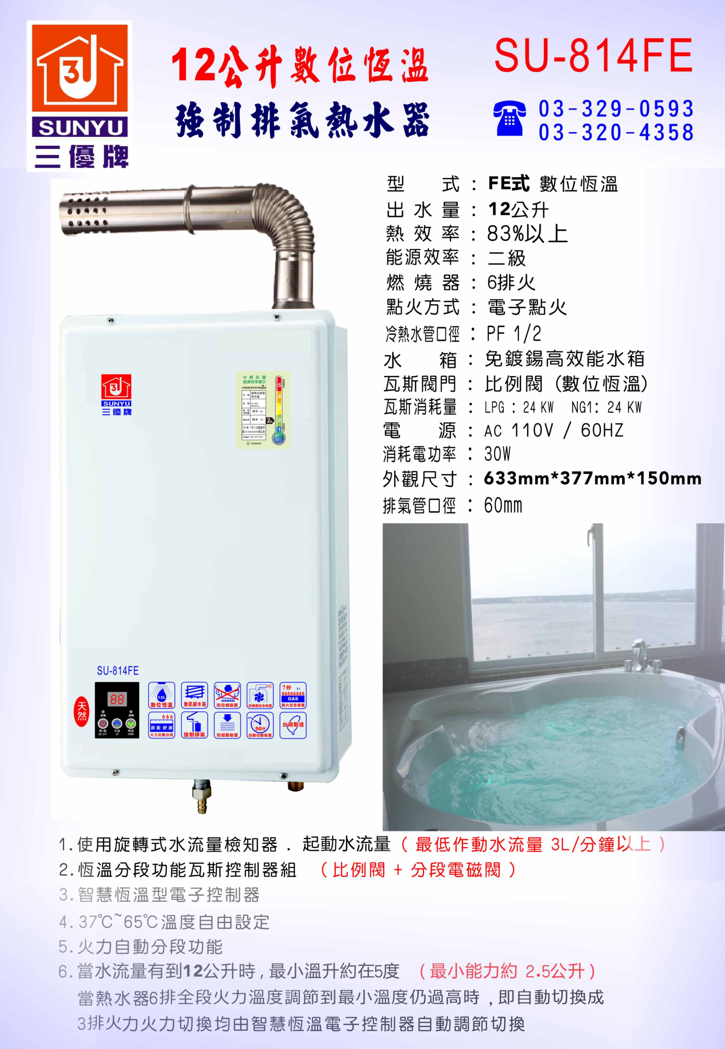 三優牌 SU-814 12公升數位恆溫熱水器 新機上市!!