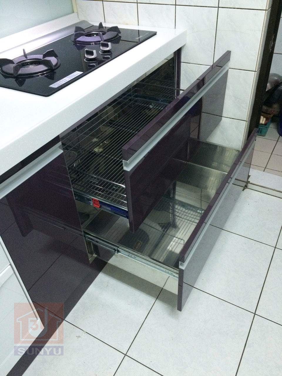 所以我們特別在水槽上方增加了鋁框玻璃門