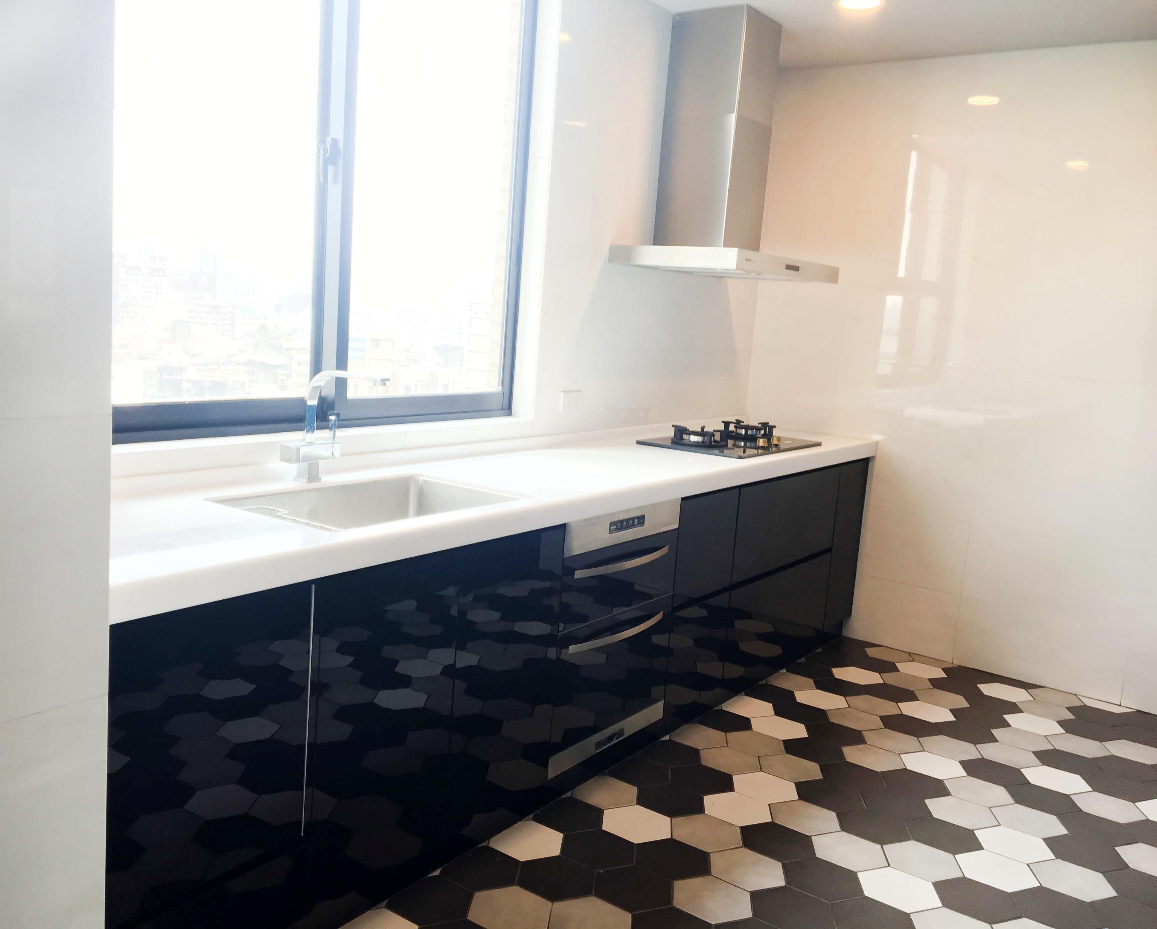 廚房門板及地板磁磚色調都是他們的構想