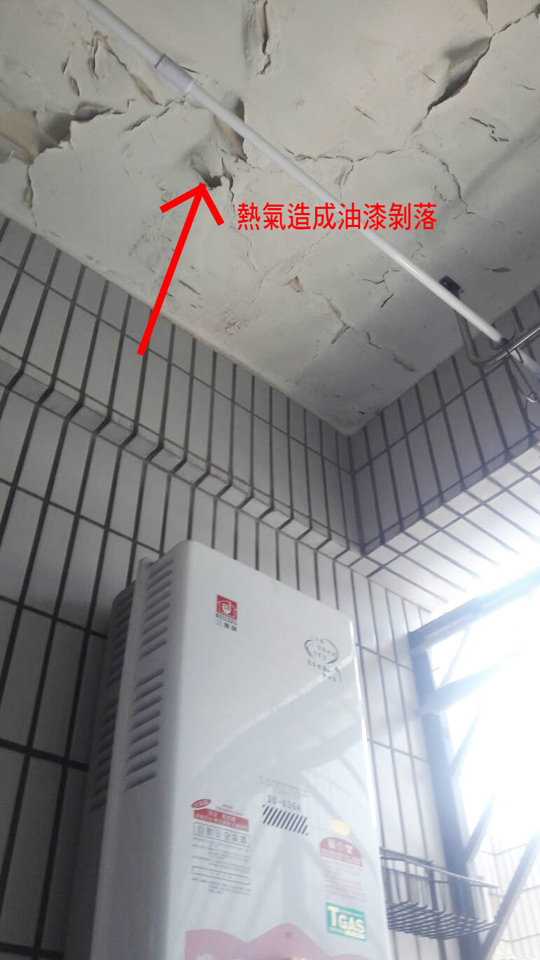 RF式熱水器排出來的熱氣會造成圖1️⃣天花板油漆脫落