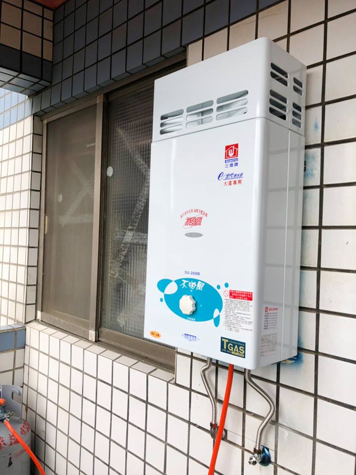 經朋友介紹購買了三優牌SU-268抗強風形屋外型熱水器